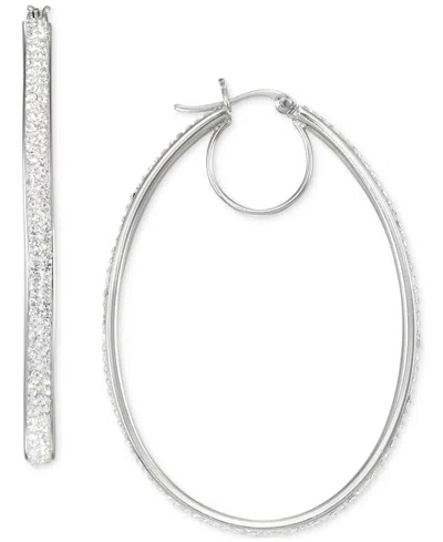 Crystal Pave Oval-shape Click Top Hoop Earrings In Silver
