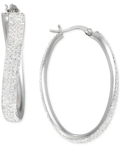 Crystal Pave Wavy Oval Hoop Earrings In Silver