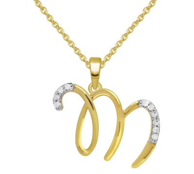 Diamond Fancy Initial 18" Pendant Necklace (1/10 Ct. T.w.) In 14k Gold-plated Sterling Silver In Yellow