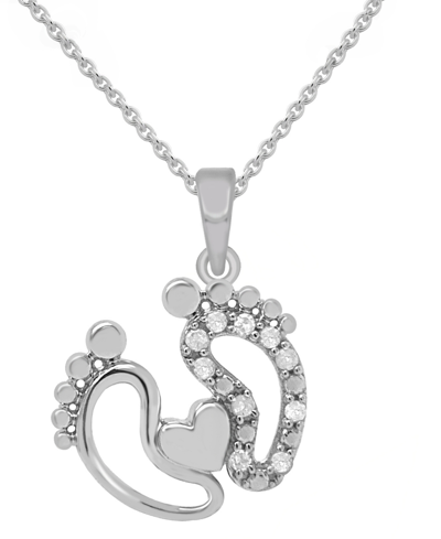 Diamond Feet & Heart 18" Pendant Necklace (1/10 Ct. T.w.) In Sterling Silver Or Sterling Silver & 14