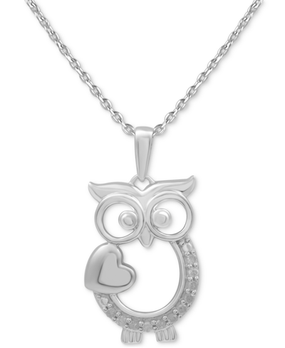 Diamond Owl Heart 18" Pendant Necklace (1/10 Ct. T.w.) In Sterling Silver Or Sterling Silver & 14k G