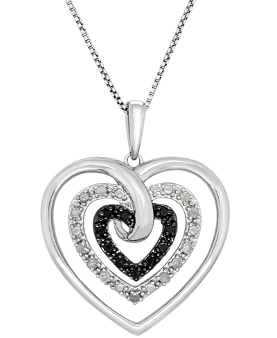 Black Diamond (1/10 Ct. T.w.) & White Diamond (1/20 Ct. T.w.) Open Heart 18" Pendant Necklace In Ste In Sterling Silver