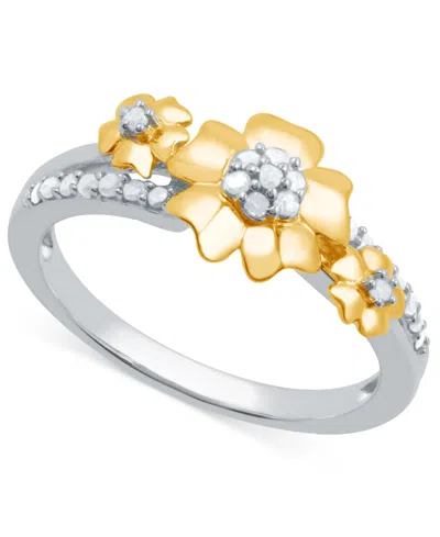 Diamond Flower Ring (1/10 Ct. T.w.) In Sterling Silver & 14k Gold-plate In Sterling Silver Gold-plate