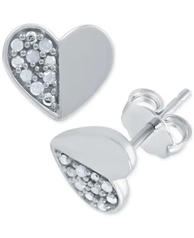 Diamond Polished Heart Stud Earrings (1/10 Ct. T.w.) In Sterling Silver