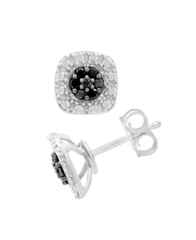 Black & White Diamond Heart Drop Earrings (1/6 Ct. T.w.) In Sterling Silver