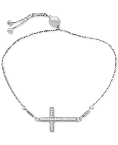 Diamond Heart & Cross Bolo Bracelet (1/6 Ct. T.w.) In Sterling Silver