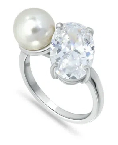 Cultured Freshwater Pearl & Lab-created Alexandrite Ring (5/8 Ct. T.w.) In 18k Gold-plated Sterling