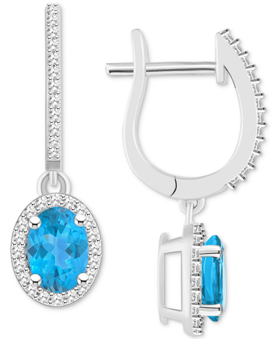 Rhodolite Garnet (1-7/8 Ct. T.w.) & Diamond (1/3 Ct. T.w.) Leverback Drop Earrings In Sterling Silve In Blue Topaz