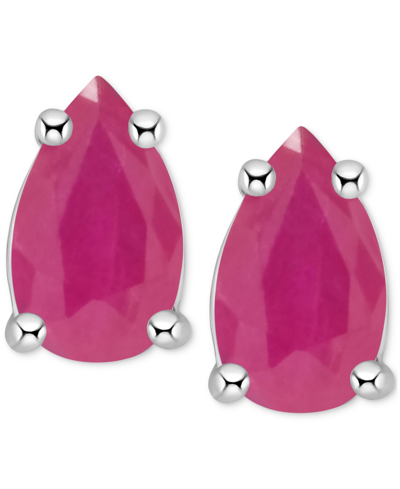 Sapphire Stud Earrings (1 Ct. T.w.) In 14k White Gold (also In Ruby & Emerald) In Ruby Red