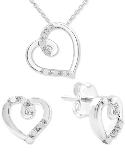 2-pc. Set Diamond Heart Openwork Pendant Necklace & Matching Stud Earrings (1/6 Ct. T.w.) In Sterlin In Sterling Silver
