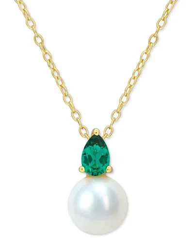 Cultured Freshwater Pearl (8-1/2mm) Birthstone 18" Pendant Necklace In 18k Gold-plated Sterling Silv In May,emerald