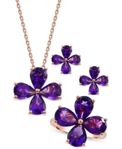 Amethyst Flower Jewelry Collection In 14k Rose Gold Plated Sterling Silver