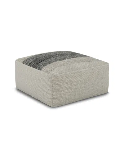 Sabella Square Woven Outdoor And Indoor Pouf In Gray And White