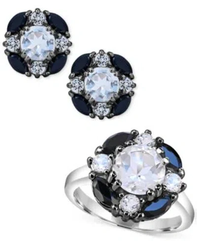 White Quartz White Topaz Black Spinel Cluster Jewelry Collection In Sterling Silver In Multi-gemstone