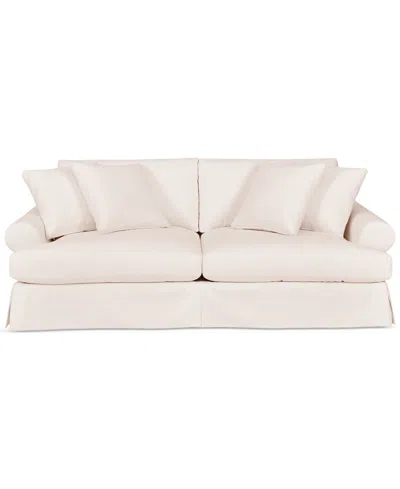 Brenalee 96" Roll Arm Performance Fabric Slipcover Sofa With Four Pillows In Peyton Cream