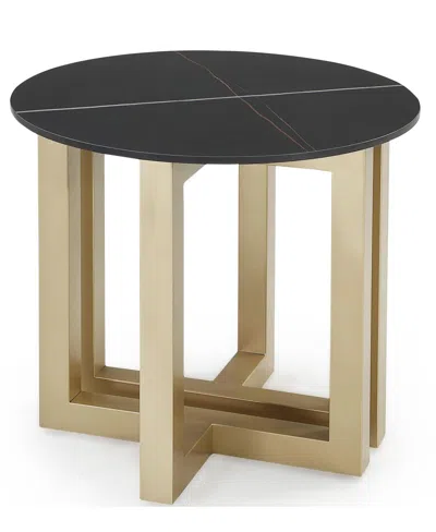 Emila 24" Round Sintered Stone Mix And Match End Table In Stone Black,champagne