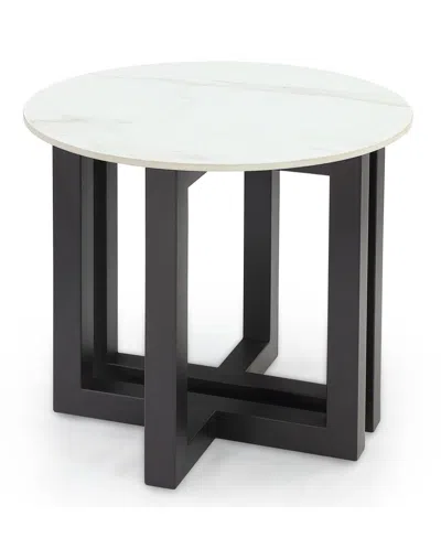 Emila 24" Round Sintered Stone Mix And Match End Table In Stone White,gunmetal