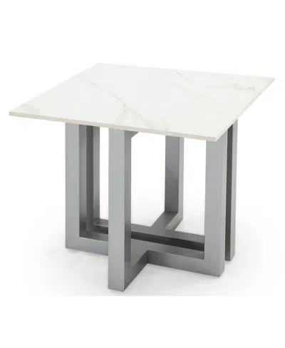 Emila 24" Square Sintered Stone Mix And Match End Table In Stone White,silver Sky