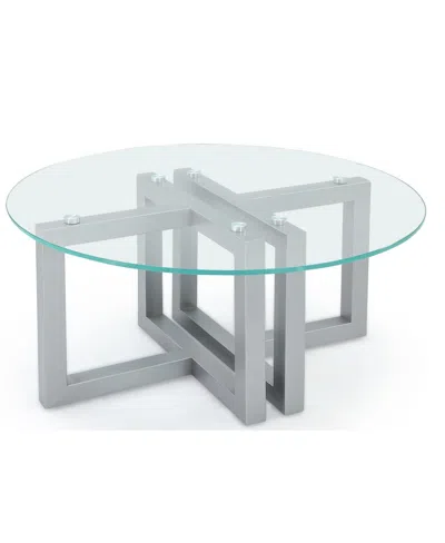 Emila 38" Round Glass Mix And Match Coffee Table In Clear Glass,silver Sky