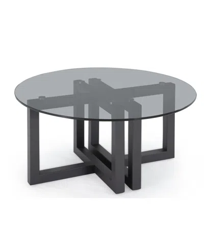 Emila 38" Round Glass Mix And Match Coffee Table In Smoked Glass,gunmetal
