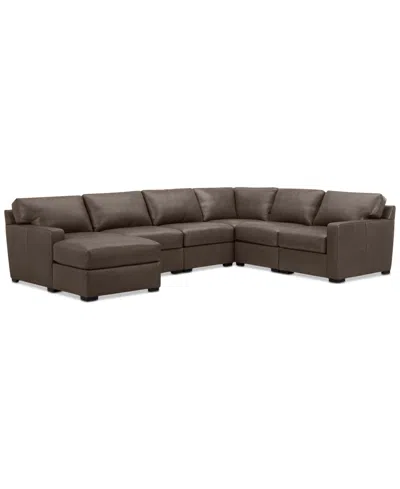 Radley 129" 6-pc. Leather Square Corner Modular Chaise Sectional, Created For In Chocolate