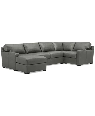 Radley 136" 4-pc. Leather Square Corner Modular Chaise Sectional, Created For In Anthracite