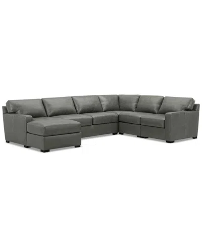 Radley 129" 6-pc. Leather Square Corner Modular Chaise Sectional, Created For In Ash