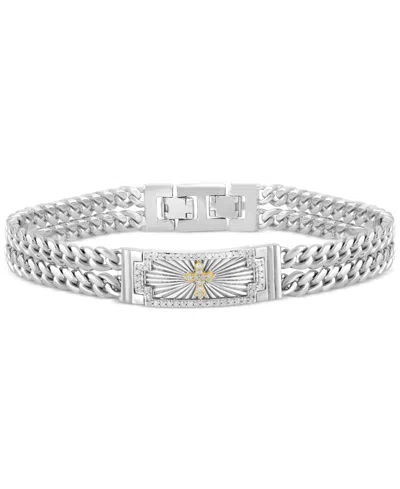 Men's Diamond Cross Double Curb Chain Bracelet (3/8 Ct. T.w.) In Sterling Silver