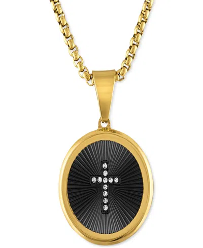 Men's Diamond Cross Oval 22" Pendant Necklace In Black & Gold-tone Ion-plated Stainless Steel