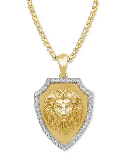 Men's Diamond Lion 22" Pendant Necklace (1/3 Ct. T.w.) In 14k Yellow Gold-plated Sterling Silver In Gold Over Silver