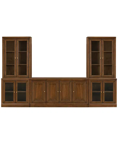 Furniture Amren 65" Wood 2 Door Console Table With 2 Door Hutches And 2 Door Bases In Brown