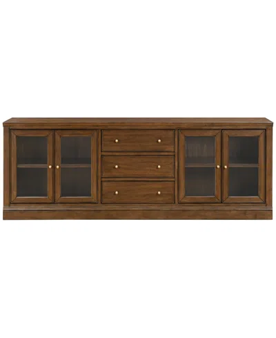 Furniture Amren 85" Wood 4 Door Console With Door Hutches And 2 Door Bases With Drawers In Brown