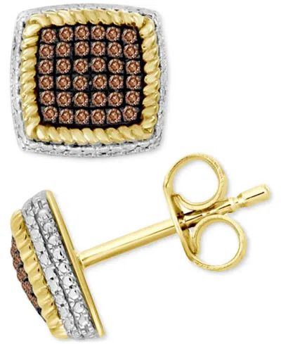 Men's Brown Diamond Square Cluster Stud Earrings (1/3 Ct. Tw) In 10k Gold