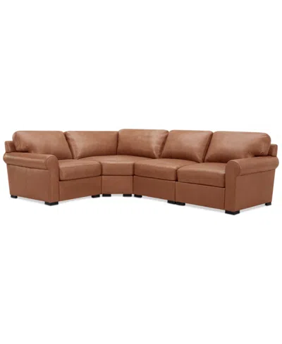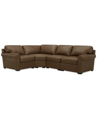 Radley Roll Arm 117" 4-pc. Leather Wedge Corner L Sectional, Exclusively At In Brown