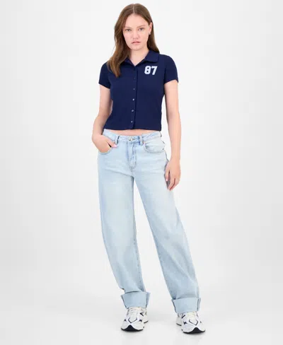 Juniors' Roll-cuff Barrel-leg Jeans In Blue