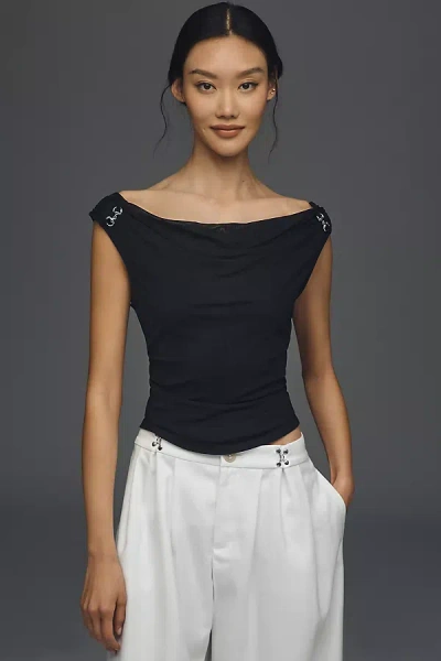 Draped Sleeveless Boat-neck Top In Black