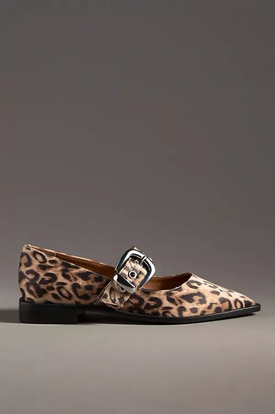 Pointed-toe Moto Mary Jane Flats In Beige