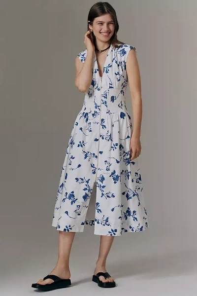 Smocked-waist Zip-up Shirt Dress In Multicolor