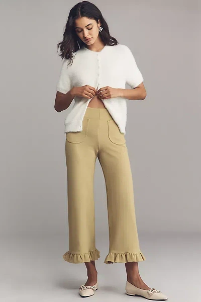 The Colette Crop Velvet Ruffle-hem Pants By In Green