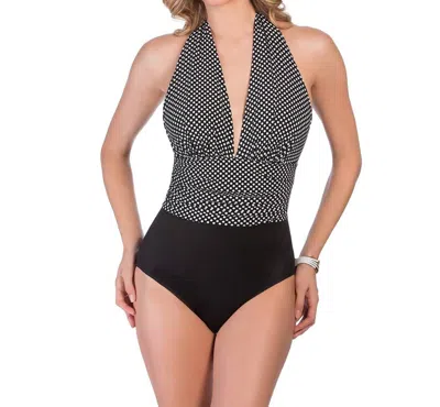 Spot On Yves Plunge Halter One Piece Swimsuit In Black And White