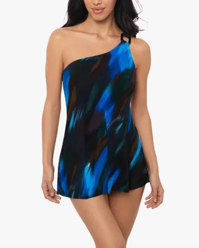 Swipe Right Amal One-shoulder Swim Dress In Black/multi