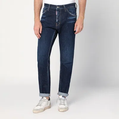 Slim Navy Blue Washed-effect Jeans In Animal Print