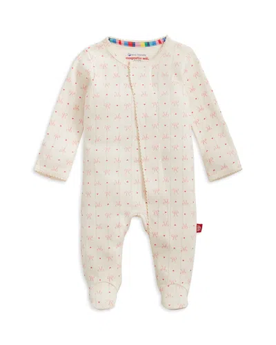 Girls' Heart & Bow Pointelle Magnetic Footie - Baby In Neutral