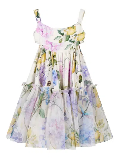 Kids' Floral-print Dress In Neutrals