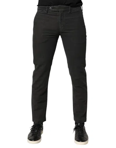 Dark Gray Cotton Mid Waist Skinny Men Denim Jeans In Black