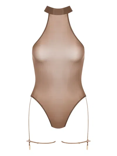 French Kiss Light Halter-neck Thong Bodysuit In Brown