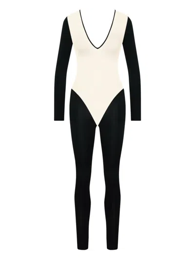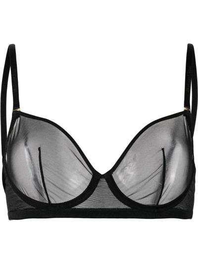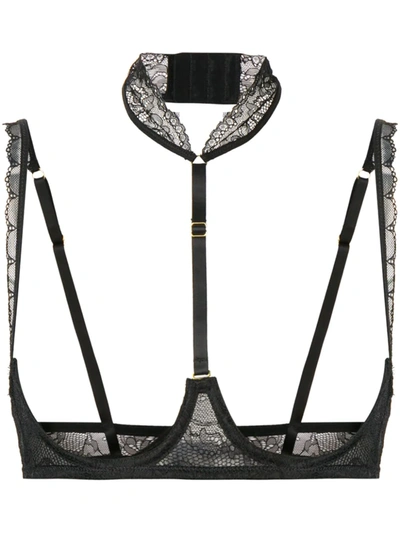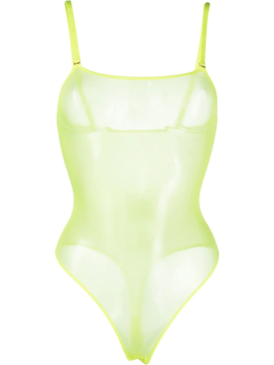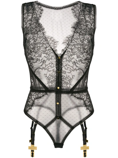 Mesh-panelled Mock-neck Bodysuit In 黑色