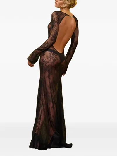 Lace Open-back Maxi Dress In Black