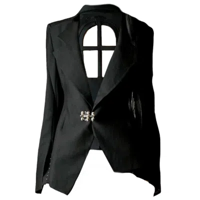 Women's Black La Lunette Window Soild Asymmetric Blazer