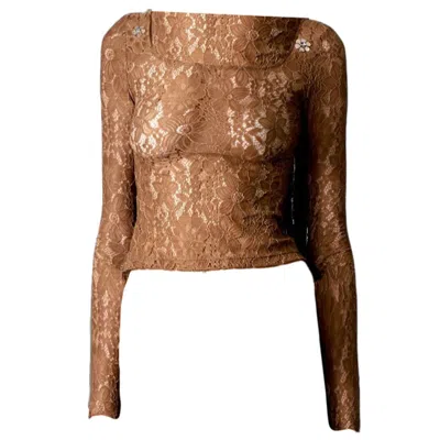 Women's Cocoa Brown Lace Whisper Blossom Knit Top